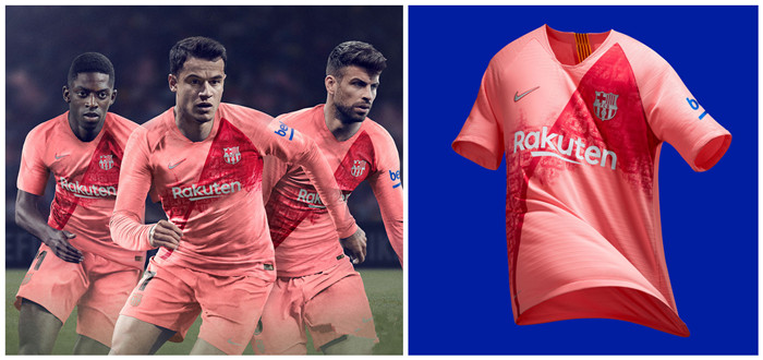 Více než před měsícem Barcelona klub společně odhalil nový druhový dres týmu v sezóně 2018-19. Odvážný a krásný design nadále chválí Barcelonu jako skvělé město. Tento dvoubarevný dres, křišťálové křídlo a okolní vzory jsou postupně erodovány světle růžovou barvou, je nejnovější ze série odvážných inovací v barcelonském jerseyovém designu.