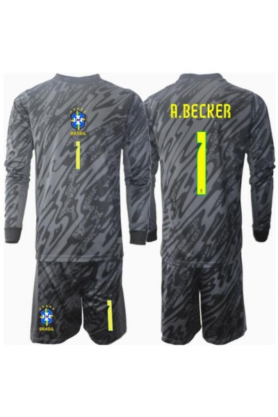Fotbalové Dres Brazílie Alisson Becker #1 Brankářské Dětské Venkovní Oblečení Copa America 2024 Dlouhý Rukáv (+ trenýrky)