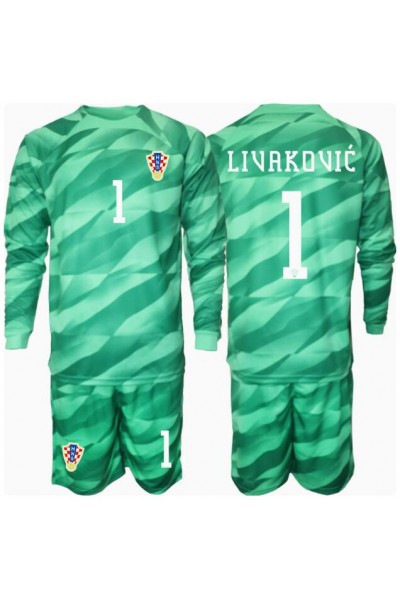 Fotbalové Dres Chorvatsko Dominik Livakovic #1 Brankářské Dětské Venkovní Oblečení ME 2024 Dlouhý Rukáv (+ trenýrky)