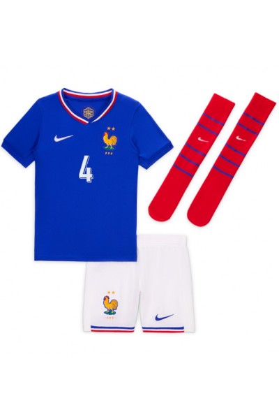 Fotbalové Dres Francie Dayot Upamecano #4 Dětské Domácí Oblečení ME 2024 Krátký Rukáv (+ trenýrky)