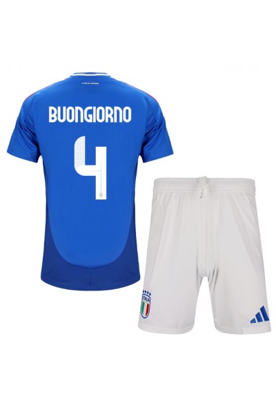 Fotbalové Dres Itálie Alessandro Buongiorno #4 Dětské Domácí Oblečení ME 2024 Krátký Rukáv (+ trenýrky)