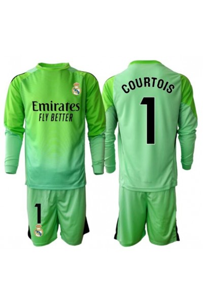 Fotbalové Dres Real Madrid Thibaut Courtois #1 Brankářské Dětské Venkovní Oblečení 2025-26 Dlouhý Rukáv (+ trenýrky)